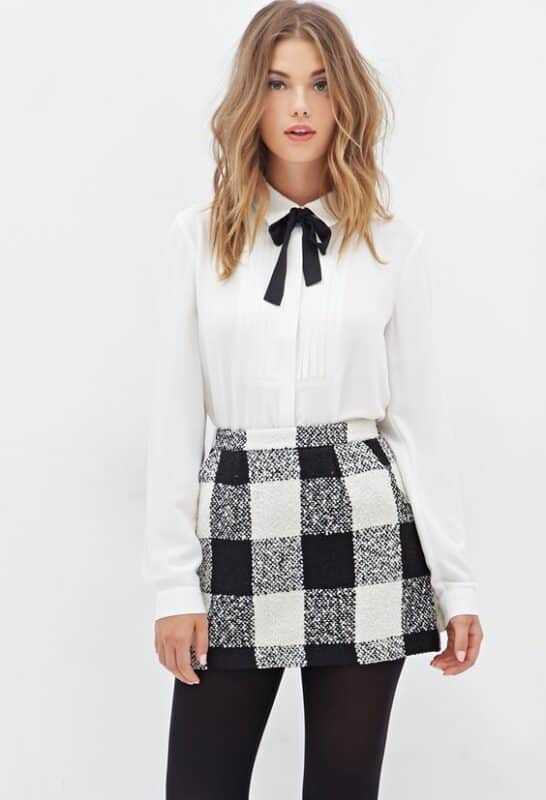 Las faldas corta a cuadros para la noche son una tendencia que no a pasado de moda, con la combinación correcta lograras un outfit para la noche juvenil. Puedes usarlas con tacones o si no eres muy baja de estatura van muy bien con zapatillas lisas.